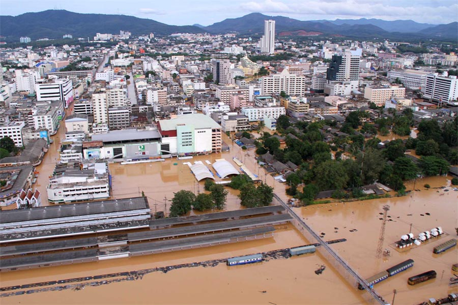 Banjir besar ini menggagalkan aktivitas ekonomi — terutama sektor perdagangan, real estate, dan pariwisata — di kota yang biasanya padat aktivitas. (nationthailand)